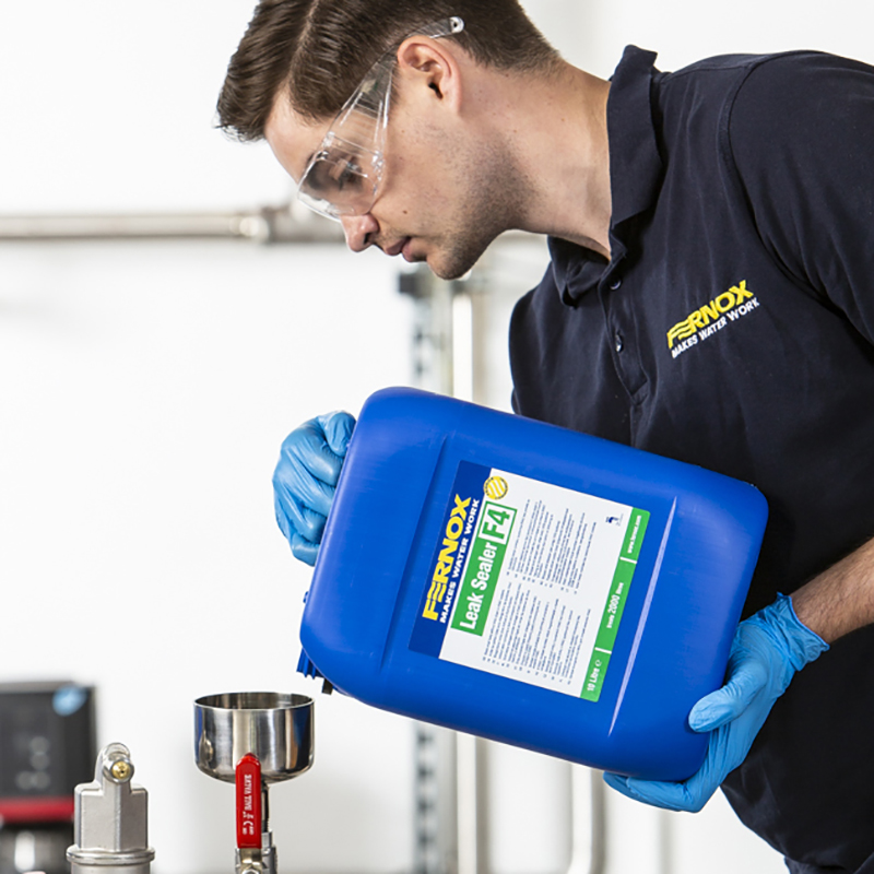 Το Fernox Leak Sealer F4 ταξινομείται ως μη επικίνδυνο, αλλά όπως με όλα τα χημικά φυλάξτε το μακριά από παιδιά. Σε περίπτωση επαφής με τα μάτια ή το δέρμα, ξεπλύνετε αμέσως με άφθονο νερό.